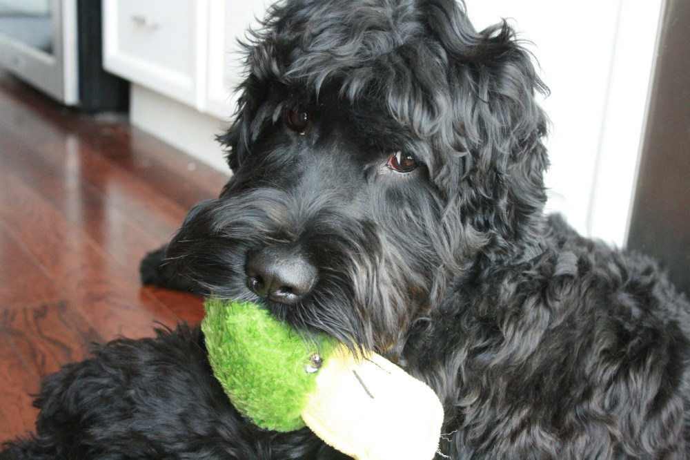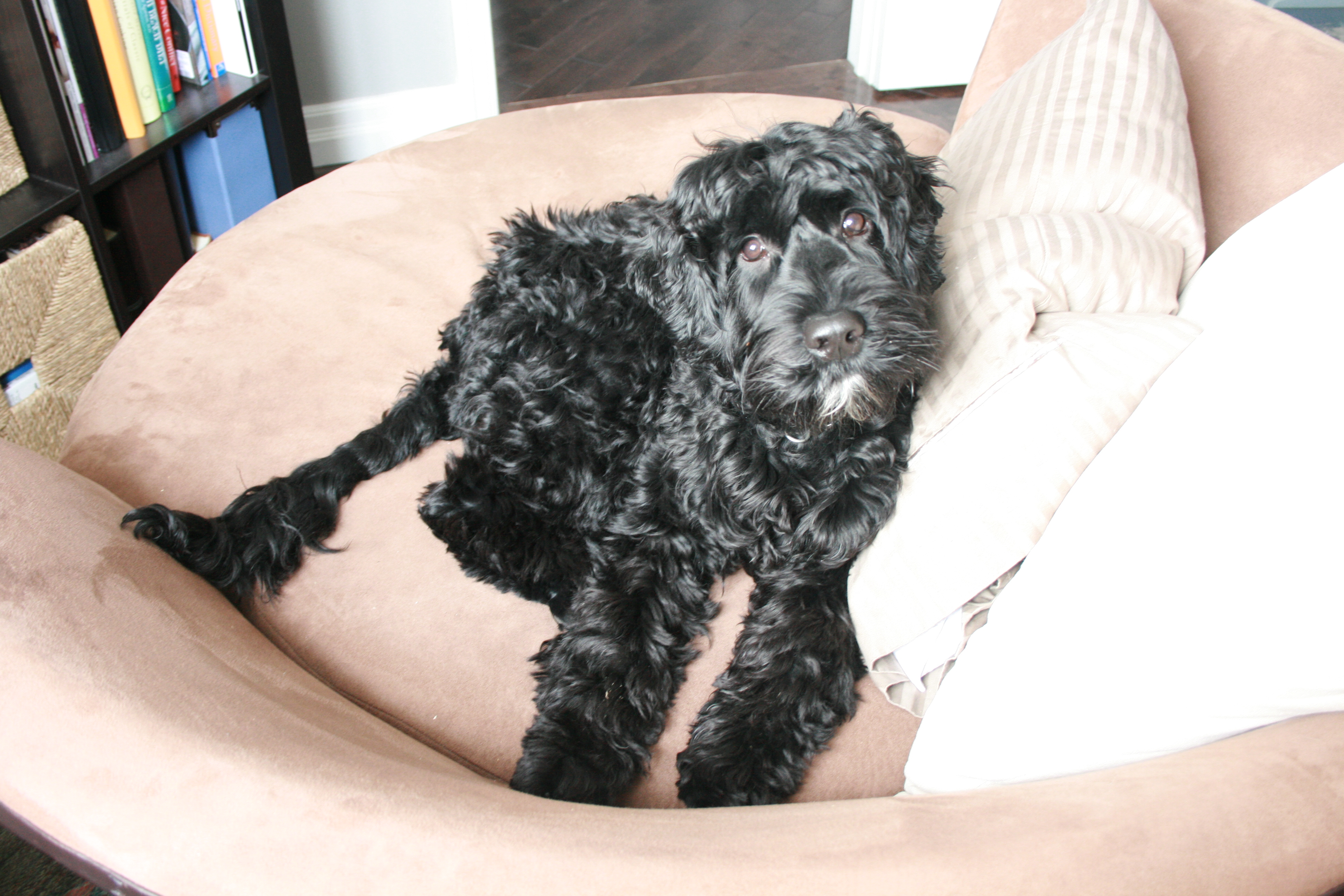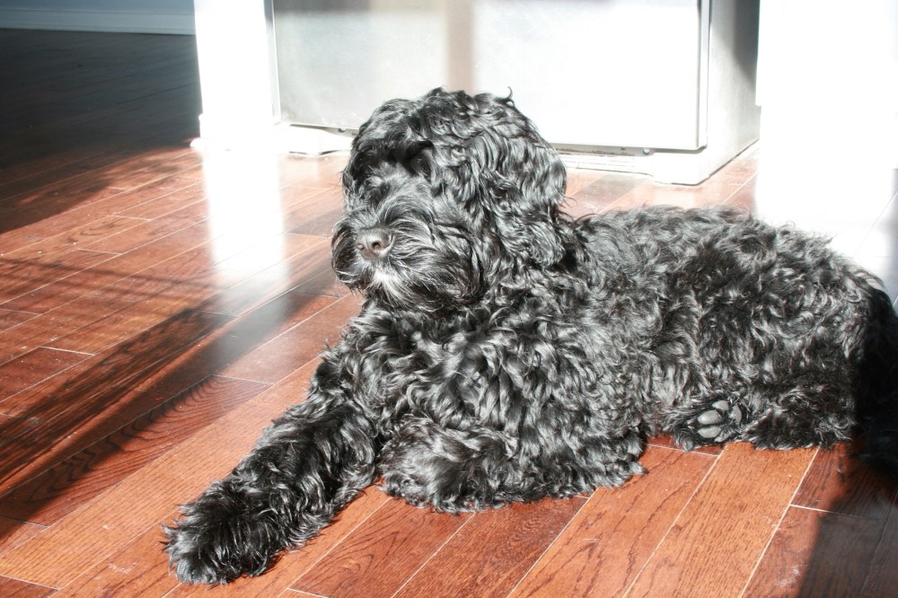 Typical Portuguese Water Dog sleeping contortion.